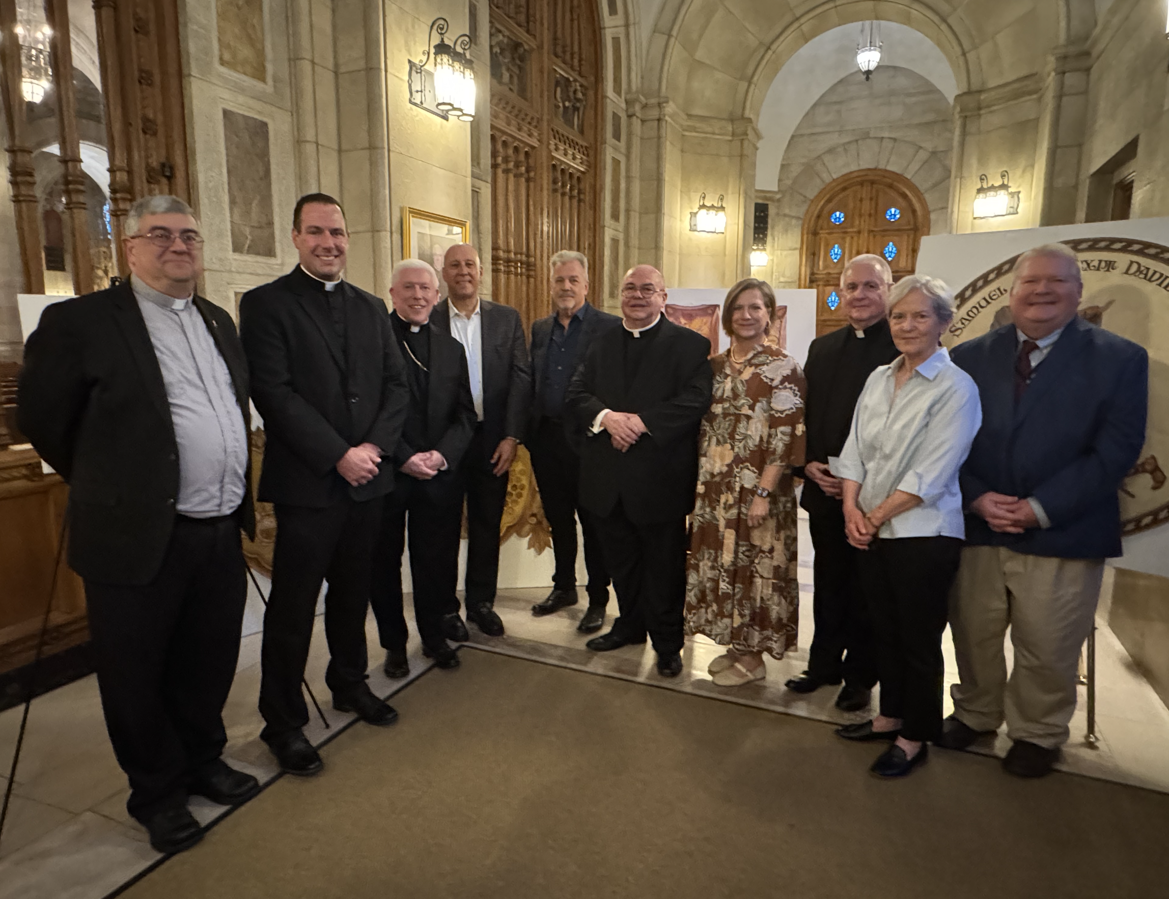 On March 27th, we publicly announced that, following upon the success of the diocesan-wide Living Christ capital campaign and the extraordinary generosity of so many donors, the Diocese of Toledo is now able to begin three major initiatives to restore and enhance the mother church of our Catholic diocese, Our Lady, Queen of the Most Holy Rosary Cathedral. And on April 16th, we held a press event in the narthex formally to announce that one of those initiatives, the realization of the Luminous Mysteries, is now poised to begin. Gathered with the members of our Cathedral Restoration Committee and others, we welcomed the overall project manager of our Cathedral restoration, Mr. Louis DiCocco of St. Jude Liturgical Arts Studio; we introduced the artist, Mr. David LaFleur whose studio is in Avon Lake, Ohio; we acknowledged and thanked the Luminous Foundation of the Delp family whose generous gift for this purpose to the Living Christ campaign makes possible this installation; and we displayed several of the renderings and images which will soon grace those undecorated vaults!
