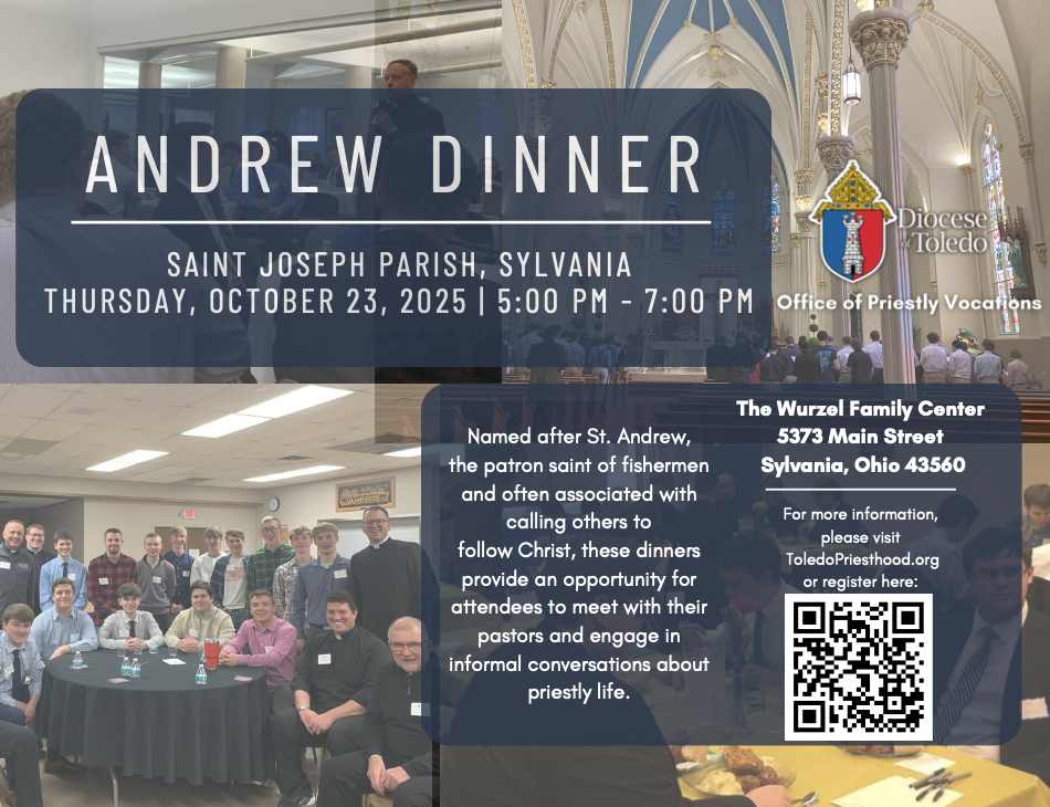 Named after St. Andrew, the patron saint of fishermen and often associated with calling others to follow Christ, these dinners provide an opportunity for attendees to meet with their pastors and engage in informal conversations about priestly life.