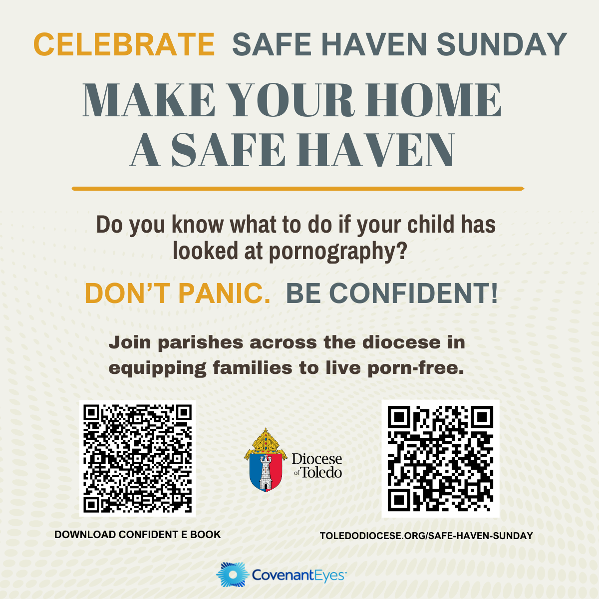 The Diocese of Toledo will observe its second annual Safe Haven Sunday on March 7–8, continuing our commitment to helping individuals, marriages, and families address the harmful effects of pornography. Safe Haven Sunday will be observed annually at or near the third weekend of Lent.