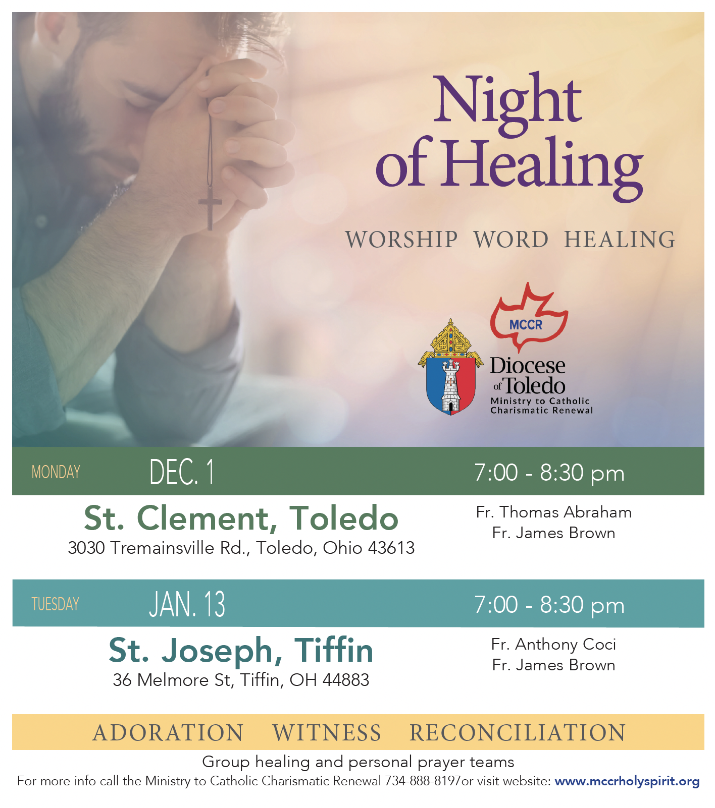 Monday, December 1, 2025St. Clement - Toledo3030 Tremainsville Rd., Toledo, Ohio 436137:00 - 8:30 pm