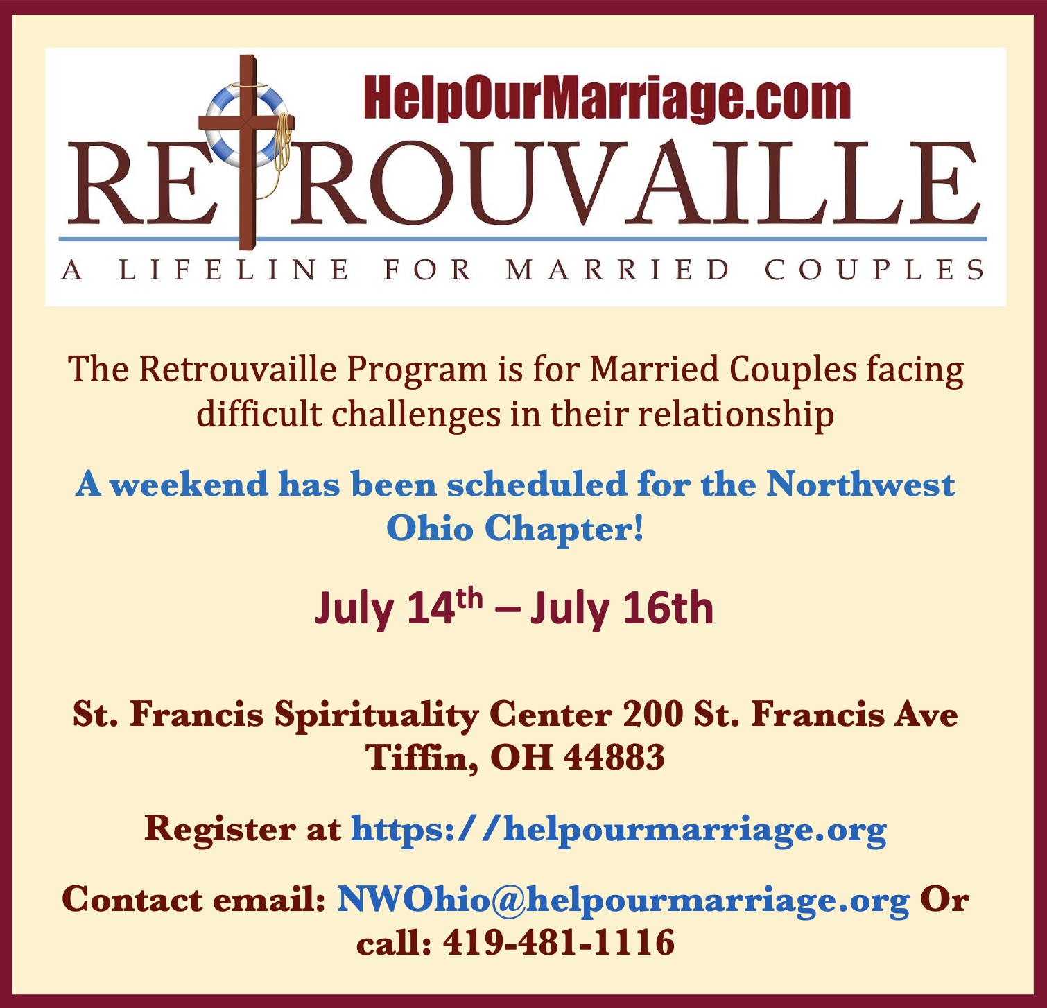 Contact email: NWOhio@helpourmarriage.org or call: 419-481-1116